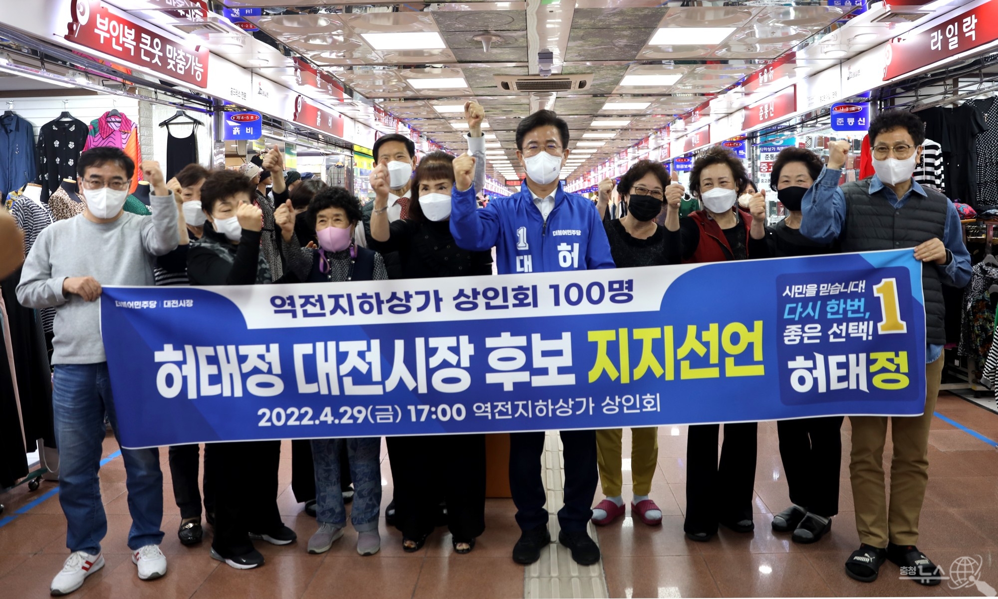 역전지하상가 상인회(회장 이정숙) 100명은 지난29일 허태정 대전시장 후보에 대한 지지를 선언했다.