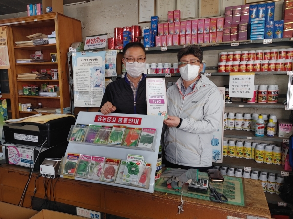 특히 이번 캠페인은 농업기술센터와 협업해 농번기 전 농약의 수요가 늘어나는 시기에 맞춰 생명사랑 실천업소에 미니현수막을 설치하고 방문객을 대상으로 홍보물 배부를 통해 자살 예방 상담 전화번호를 알렸다.