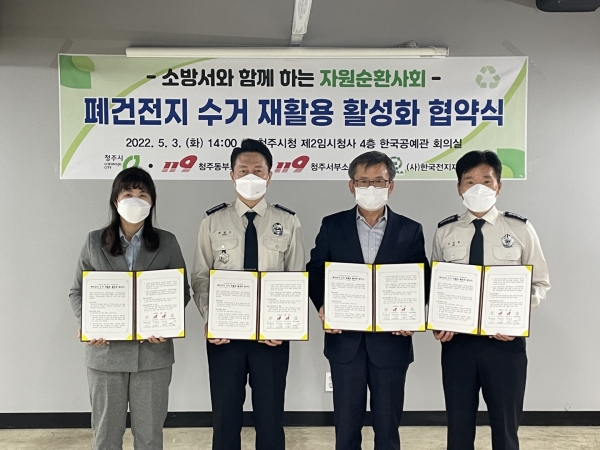 이번 협약을 통해 청주시는 그간 홍보와 수거가 미흡해 폐건전지 수거활동의 사각지대였던 공공기관 중 소방서와 안전센터 18개소에 우선적으로 수거체계를 구축하고 폐건전지를 집중 수거해 가정에 방치된 폐건전지로 인한 화재와 폭발 등 사고위험을 낮춤과 동시에 재활용률을 높이고자 기대하고 있다.