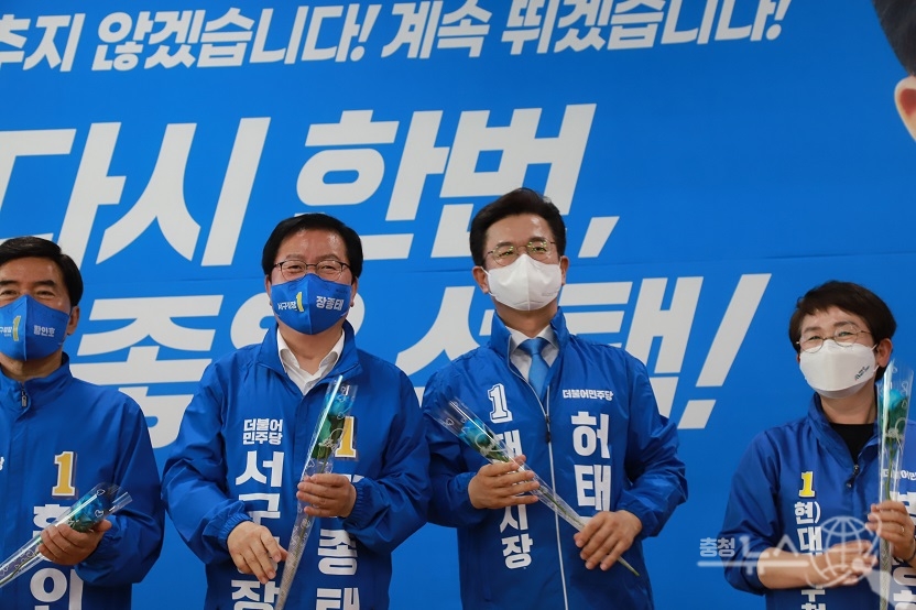 이어 “우리가 지방권력까지 넘겨줄 순 없다”라며 “6월 1일 반드시 허태정 시장후보를 중심으로 한 원팀이 승리하고, 민주지방정부를 지속 가능하게 이끌어 나갈 것”이라고 강조했다.