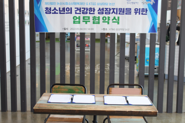 [충청뉴스큐] 재단법인 논산시청소년행복재단은 지역 청소년의 건강한 성장을 지원하기 위해 KT&G상상마당 논산과 업무협약을 체결했다.