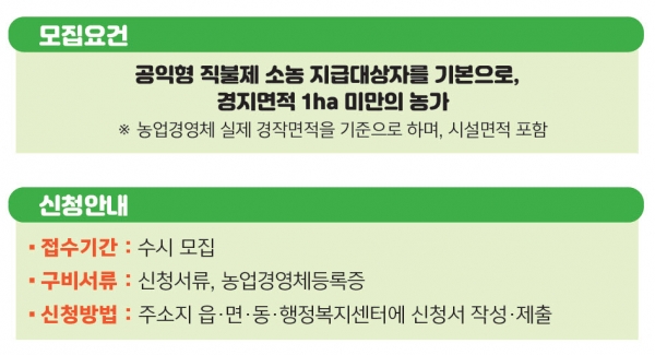 출하회 신청 대상은 공익형 직불제 소농 지급대상자를 기본으로 경지면적 1ha 미만인 아산시 농업인으로 참여 희망 농업인은 6월까지 읍·면·동 행정복지센터를 통해 신청할 수 있다.