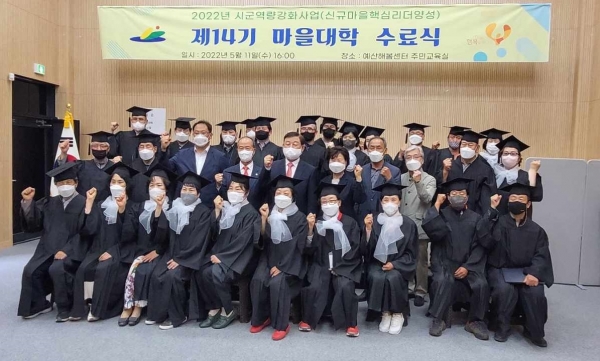 [충청뉴스큐] 예산군은 지난 11일 예산해봄센터 주민교육실에서 예산군행복마을지원센터가 주관하는 ‘제14기 마을대학’ 수료식을 개최했다.