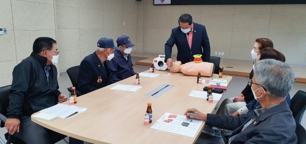 이날 기증식에는 보훈단체 회원들을 대표해 7개 단체회장들이 참석했으며 기증식 후에는 고창일 회장이 직접 강사로 나서 응급상황 발생 시 신고요령 심폐소생술 방법 자동심장충격기 사용법 등에 대한 교육을 진행했다.