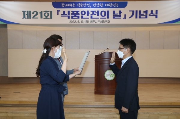 이번 행사는 코로나19로 인해 3년 만에 개최되는 행사로 시는 그동안 시민보건 향상 및 식품안전에 기여한 청주시어린이급식관리센터, 식품제조가공업소, 식품접객업소, 소비자식품위생감시원, 공무원 등 30명에게 식품안전 유공 표창패를 수여했다.