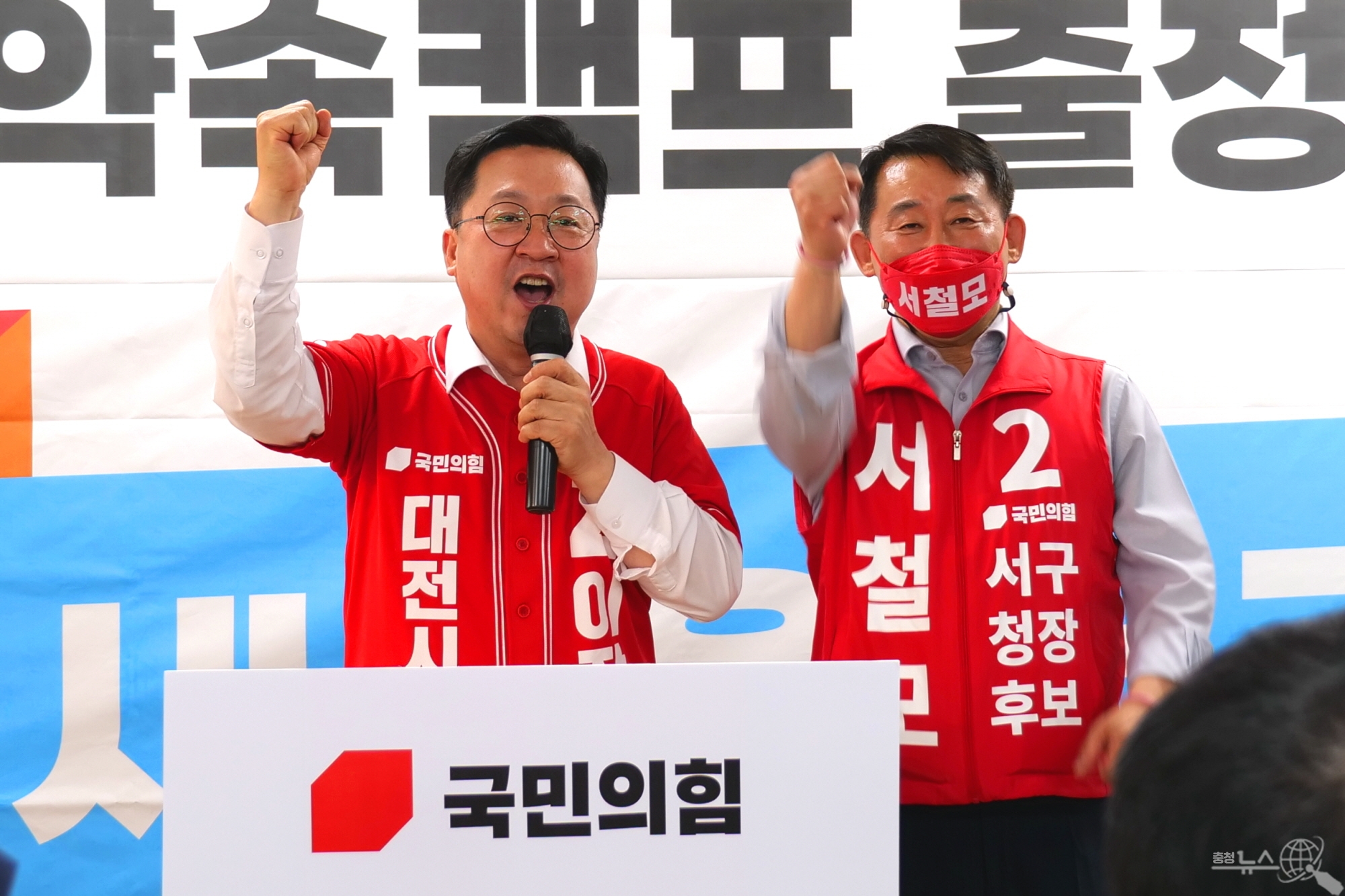 이장우 국민의힘 대전시장 후보는 “대전은 충청도의 수부 도시다. 충청도 사람 이장우와 서철모가 지켜내겠다”며 “서 후보와 함께 30년 된 둔산 재개발 프로젝트를 가동해 둔산을 세계중심도시로 육성하겠다”고 강조했다.