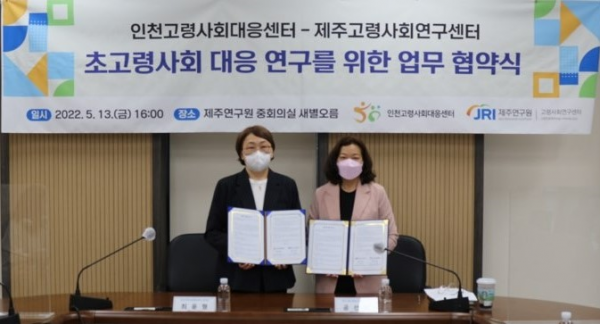 인천시사회서비스원 인천고령사회대응센터는 최근 제주연구원고령사회연구센터와 초고령사회 대응 연구 업무협약을 했다고 16일 밝혔다.