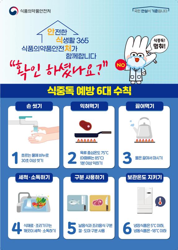또한 최근 코로나19 사회적 거리두기 해제로 모임, 행사, 야외활동 등의 증가가 예상되는 만큼 일상생활에서 식중독 예방을 위한 노력이 필요한 실정이다.