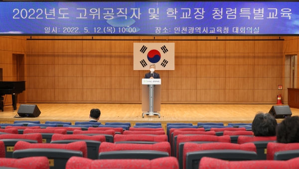 [충청뉴스큐] 인천광역시교육청은 청렴하고 적극적으로 일하는 인천교육을 위해 기관의 4급 고위 공직자 및 학교장 약 614명을 대상으로 ‘2022년 고위공직자 및 학교장 청렴교육’을 실시했다고 16일 밝혔다.