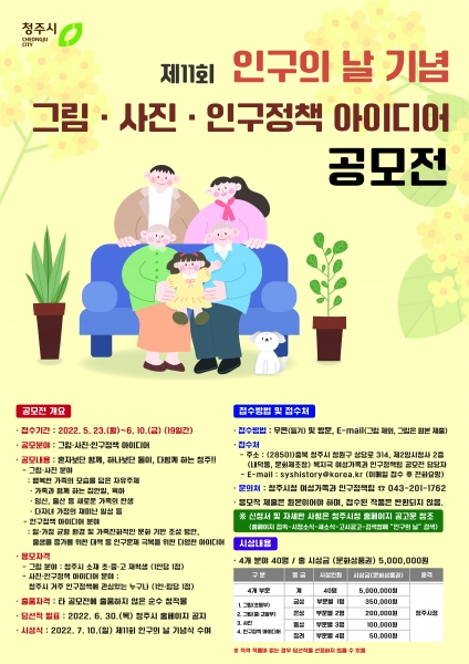 [충청뉴스큐] 청주시는 제11회 인구의 날을 기념해 그림·사진·인구정책 아이디어 공모전을 개최한다.