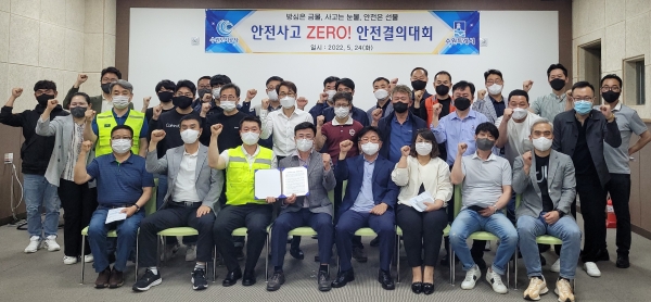 [충청뉴스큐] 수원도시공사 자원순환센터는 24일 관내 13개 수거업체 대표와 20개 재활용 처리업체 대표 등 50여명이 참석한 가운데 ‘2022년, 안전사고 ZERO 사업장 조성’을 위한 ‘결의대회’를 열고 무사고 사업장 조성을 위해 총력을 다 하기로 다짐했다.