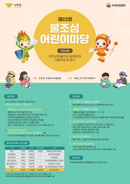 [충청뉴스큐] 대전소방본부는 다음달 30일까지 ‘제22회 불조심 어린이마당’ 참가학급을 모집한다고 25일 밝혔다.