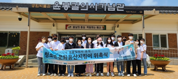 관광시설사업소 관계자는 “청소년문화유산지킴이들이 우리 지역을 대표하는 독립운동가인 윤봉길 의사를 기억하고 알리는데 앞장서주길 바란다”며 “관내 청소년들이 우리 고장의 문화유산에 깃든 역사적 가치와 의미를 익히고 모범적인 문화재 보존활동으로 자리매김할 수 있는 계기가 되길 바란다”고 말했다.