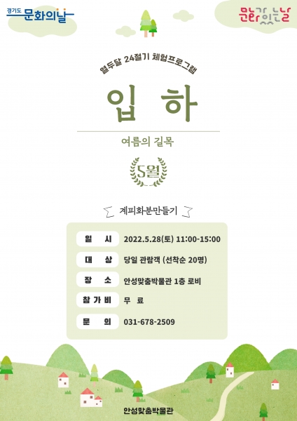 박물관은 매달 마지막 주 토요일에 문화체육관광부의 ‘문화가 있는 날’ 및 경기도 ‘문화의 날’을 맞이해 잊혀가는 24절기를 기억하기 위한 체험을 기획했다.