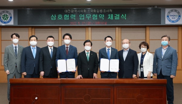 [충청뉴스큐] 대전광역시의회는 지방의회 전문성 강화를 위해 국회 입법조사처와 상호교류 및 협력을 위한 업무협약을 체결했다고 27일 밝혔다.