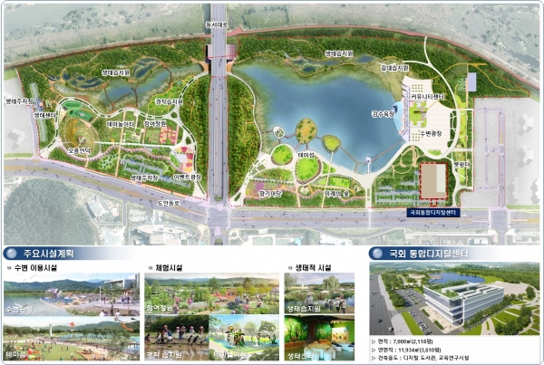 국회통합디지털센터는 연면적 11,394㎡, 지하 1층 지상 4층 규모로 갑천호수공원에 디지털 도서관, 디지털 체험·교육·전시시설, 시민 의정연수시설 등으로 조성될 계획이라고 전했다.