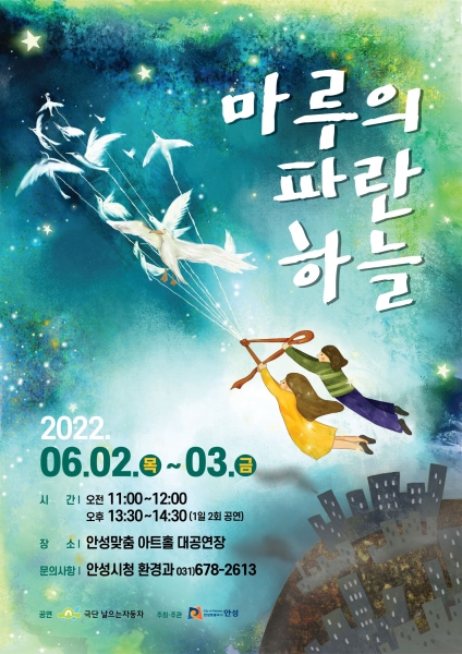 [충청뉴스큐] 안성시는 오는 6월 5일 제27회 세계환경의 날을 맞아 ‘제15회 산내들 푸른안성 환경축제’의 일환으로 기후변화 이해 및 환경보전의식 고취를 위해 6월 2일과 3일 이틀간 안성맞춤아트홀 대공연장에서 어린이 환경뮤지컬 ‘마루의 파란하늘’을 선보인다.