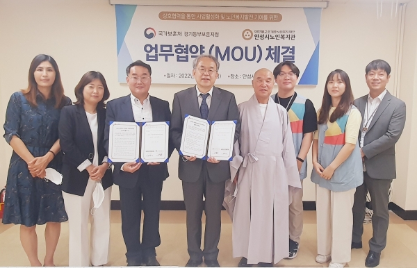 [충청뉴스큐] 대한불교조계종사회복지재단 안성시노인복지관이 국가보훈처 경기동부보훈지청과 지역사회 내 노인복지증진 및 복지업무 발전을 위한 업무협약을 체결했다고 지난 27일 밝혔다.