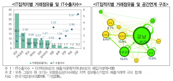 이 중 서울시 비중은 2010년 63.4%에서 2019년 59.3%로 경기도 비중은 2010년 13.0%에서 2019년 19.3%로 변하는 등 정보통신업 중심이 서울시에서 경기도로 이동하는 흐름이다.