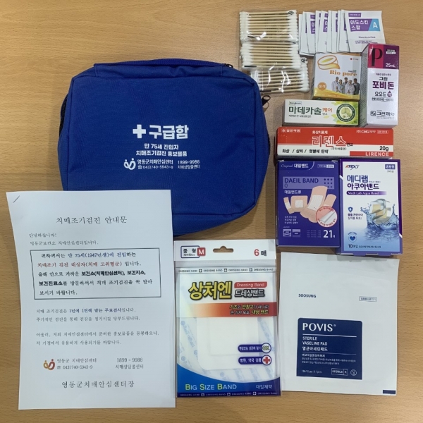 올해 만 75세 진입자를 대상으로 안내문과 함께 가정에서 응급상황시 꼭 필요한 구급함 등으로 구성된 홍보물을 우편으로 배부했다.