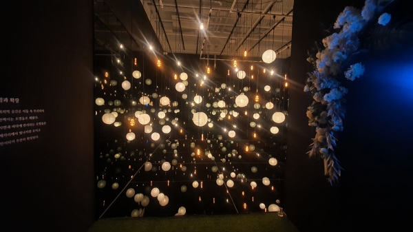 특히 지하에 있는 전시공간 전체는 잔디와 꽃으로 정원을 조성했으며 전면에 걸친 몰입형 영상, 더불어 인스타그램 포토존으로 활용할 수 있는 빛의 조형물로 꾸며졌다.
