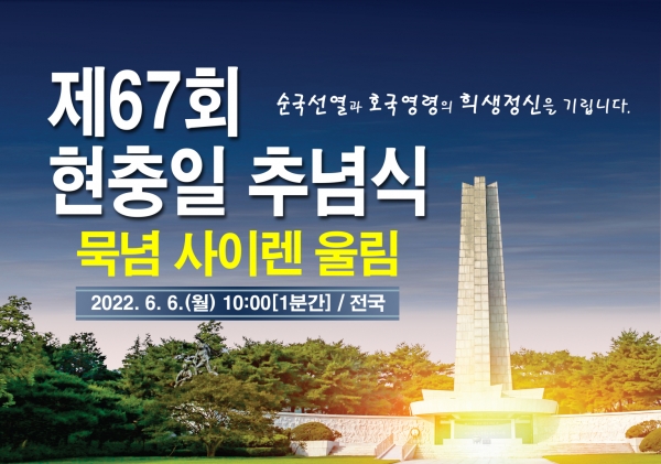 [충청뉴스큐] 제천시가 오는 6일 오전10시 제67회 현충일을 맞이해 조국 수호를 위해 헌신·희생한 순국선열과 호국영령의 애국정신을 기리는 추념행사에 맞춰 현충일 묵념 경보사이렌을 울린다고 밝혔다.