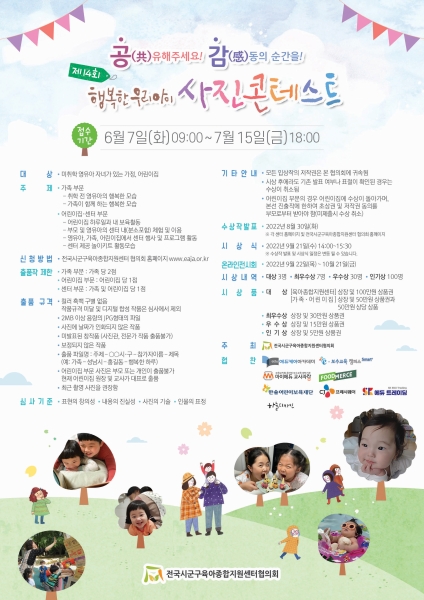 [충청뉴스큐] 평택시육아종합지원센터는 전국시군구육아종합지원센터협의회와 공동으로 ‘제14회 행복한 우리아이 사진 콘테스트’를 진행한다.