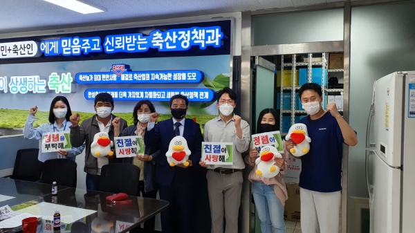 [충청뉴스큐] 안성시 축산정책과는 ‘2022 청렴·친절 동행 프로젝트’의 일환으로 지난 7일 축산인과 함께하는 청렴·친절 결의대회를 실시했다.