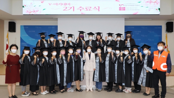 V-아카데미 2기는 지난 4월 5일 개강을 시작으로 총 10회차에 걸쳐 자원봉사 본질 탐구, 사회변화, 프로젝트 기획, 시민 리더십 및 자원봉사체험 프로그램, 1기 수료생과의 만남 등의 내용으로 진행됐으며 수료식에서는 해당 교육을 마친 30명의 수강생에게 수료증을 수여했다.