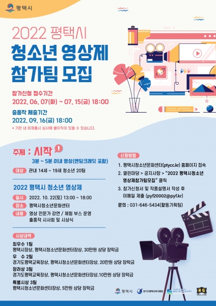 평택시청소년영상제는 평택시가 주최하고 평택시청소년문화센터·영상단RG가 주관, 경기도평택교육지원청 협력으로 진행되며 10월 22일 개최 예정이다.