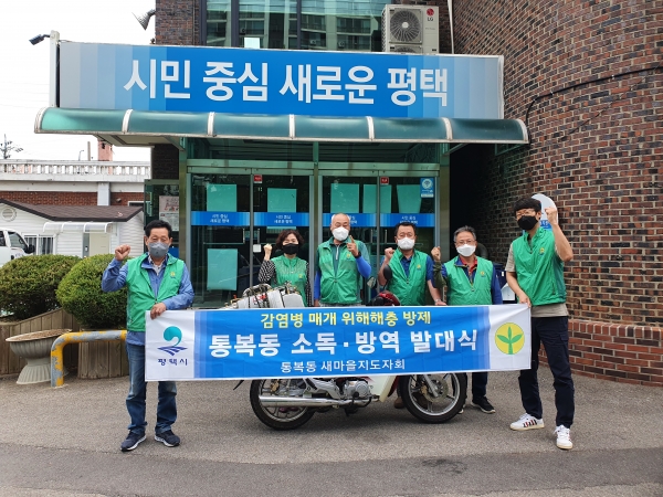 [충청뉴스큐] 평택시 통복동이 지난 7일 새마을지도자 통복동 협의회가 방역 발대식을 개최하고 관내 방역 취약지역 및 주거 밀집지역에 방역을 실시했다고 밝혔다.