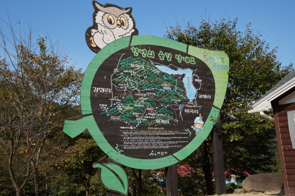 넓고 경사 없는 임도로 조성되어 있어 걷기에 편하다.