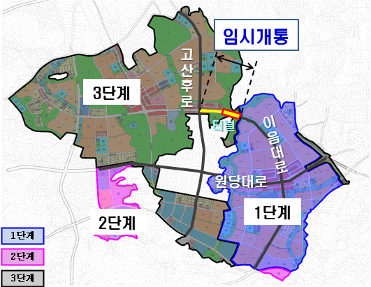 이번 임시개통된 이음대로 구간은 검단신도시 1단계에서 3단계 고산후로 구간을 연결하는 총 연장 667m로 고산을 동서로 관통하는 터널을 포함하고 있다.