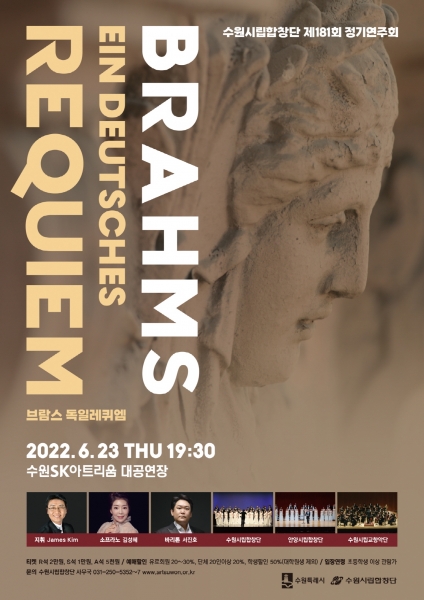 [충청뉴스큐] 수원시립합창단은 오는 6월 23일 저녁 7시 30분에 수원SK아트리움 대공연장에서 제181회 정기연주회 ‘브람스_독일레퀴엠’을 개최한다.