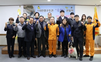 [충청뉴스큐] 경기도북부소방재난본부는 지난 24일 남양주소방서에서 119구조견 ‘수안’의 명예로운 은퇴행사를 열었다.