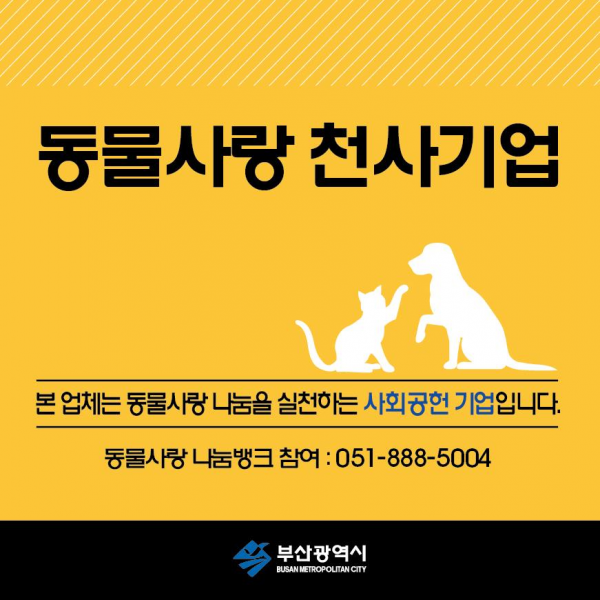 동물사랑 천사기업은 ‘부산시 동물사랑 나눔뱅크’에 반려동물 사료나 의류, 용품 등을 기부한 사회공헌기업 중에 선정된다.