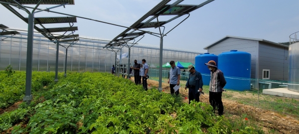 센터는 지난해 석문면 삼화리 농지 1,204㎡에 47.88kw 규모의 영농형 태양광 발전설비를 설치하고 지난 3월 태양광 설비 하부와 노지에 감자 ‘추백’ 품종을 파종한 바 있다.