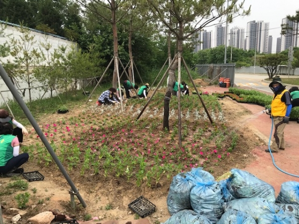 [충청뉴스큐] 평택시 고덕면 새마을부녀회는 지난 10일 여름을 맞아 고덕면 행정복지센터 화단에 여름꽃 식재를 실시했다.