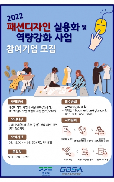 [충청뉴스큐] 경기도와 경기도경제과학진흥원은 올해 하반기 도내 섬유·패션 기업 20개 사를 대상으로 ‘패션디자인 실용화 및 역량강화 사업’을 추진한다고 14일 밝혔다.