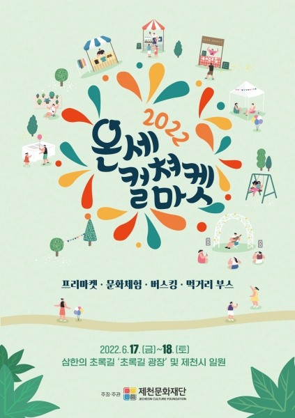 [충청뉴스큐] 제천문화재단은 오는 6월 17일 금요일 오후1시 그네공원에서 문화예술이 결합된 온세대가 참여하고 소통하는 문화마켓인 ‘온세컬쳐마켓’을 개장한다.
