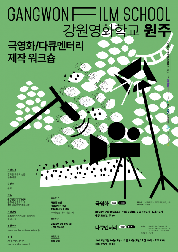 [충청뉴스큐] 강원문화재단 부설 강원영상위원회는 도내 영화인 인력양성 및 시민작품제작지원을 목적으로 하는 ‘2022년 강원영화학교’ 워크숍 수강생을 다음 달 3일까지 모집한다고 밝혔다.