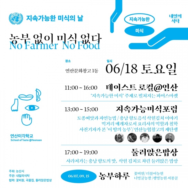 이번 문화이벤트는 UN에서 지정한 ‘지속가능한 미식의 날’을 맞아 그 가치와 의미를 되새기는 동시에 연산문화창고에서 진행되고 있는 미각학교 프로그램을 홍보해 미식 문화를 선도하는 관광자원으로서의 매력을 알리고자 마련됐다.