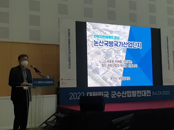 [충청뉴스큐] 논산시가 지난 15일부터 17일까지 3일간 대전컨벤션센터에서 개최된 ‘2022 대한민국 군수산업발전대전’에 참가해 논산국방국가산업단지가 첨단 국방산업 육성의 적임지임을 적극적으로 홍보했다.