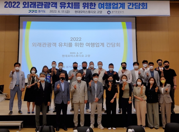 [충청뉴스큐] 경기도와 경기관광공사가 코로나19 이후 국제관광 회복기에 발맞춰 17일 오후 고양 현대모터스튜디오에서 ‘2022 외래관광객 유치를 위한 여행업계 간담회’를 개최했다.