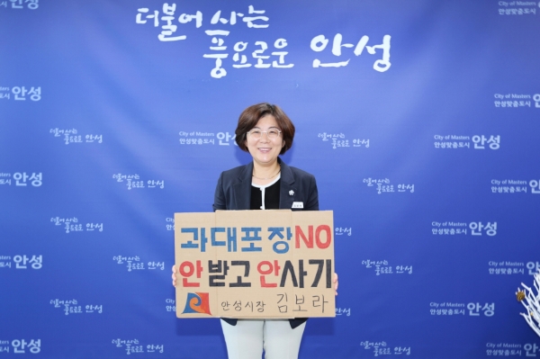 [충청뉴스큐] 김보라 안성시장이 17일 불필요한 과대포장을 근절하고 가치소비를 실천하는 친환경 소비문화를 확산하기 위한 캠페인인 ‘과대포장 선물 안 받고 안 사기’ 챌린지에 참여했다.