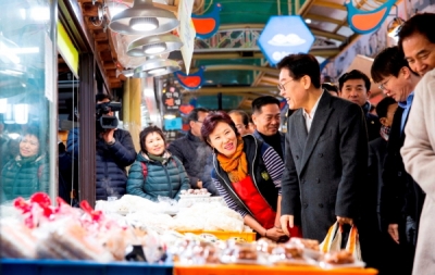 이재명 도지사는 설 명절을 앞둔 이날 오후 용인 중앙시장을 찾아 명절물품을 구입하며 장바구니 물가 실태를 점검한 뒤, 상인들과 간담회에서 이 같이 말했다. 이 자리에는 백군기 용인시장, 이충환 경기도상인연합회장, 강시한 용인중앙시장 상인회장 등 관계자 20여명이 함께했다.