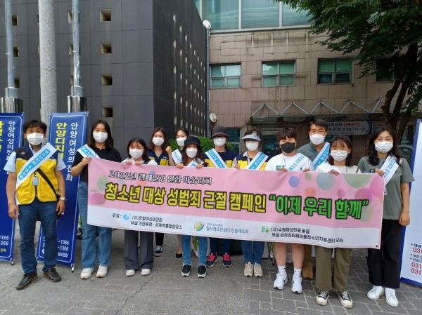 [충청뉴스큐] 안양시청소년재단 산하 일시청소년쉼터 민들레뜨락은 지난 17일 안양역에서 아동 및 청소년대상 성범죄 근절을 주제로 한 캠페인형 연합아웃리치를 진행했다.