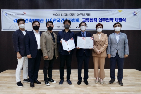 [충청뉴스큐] 안양문화예술재단에서 운영하는 김중업건축박물관과 한국건축가협회가 건축가 김중업 탄생 100주년을 기념해 건축문화에 관한 교류를 통한 발전 도모 및 사업추진을 위해 6월 17일 오후3시 김중업건축박물관 교육관에서 업무협약을 체결했다.