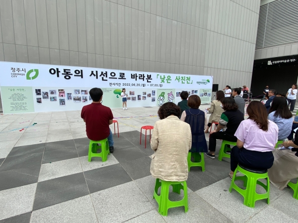 [충청뉴스큐] 청주시는 지난 20일 문화제조창 입구에서 초록우산어린이재단 충북지역본부와 함께 낮은 사진전 제막식을 추진하고 오는 28일까지 2주간 사진 전시회를 개최한다.