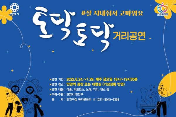 [충청뉴스큐] 안양시가 시민들의 바쁜 일상 속 잠시 쉼표를 안겨주고자 준비한‘잘 지내줘서 고마워요 토닥토닥 거리공연’이 이번 주 금요일 서막이 올라 7월 29일까지 총 6회 열린다.
